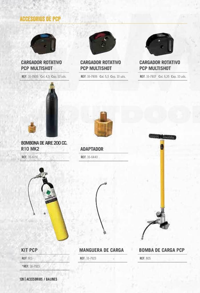 16-6191Bombona de aire de 200 cc. R10 MK2.16-6440Adaptador.811Kit PCP.16-7923Manguera de carga.805Bomba de carga PCP.