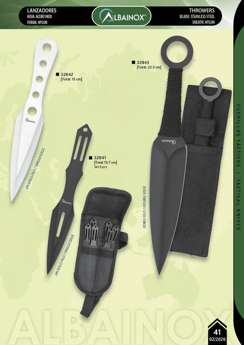 Cuchillo lanzador de acero inoxidable 3CR13MOV con hoja de 7.6 cm. Con funda de nylon negro.