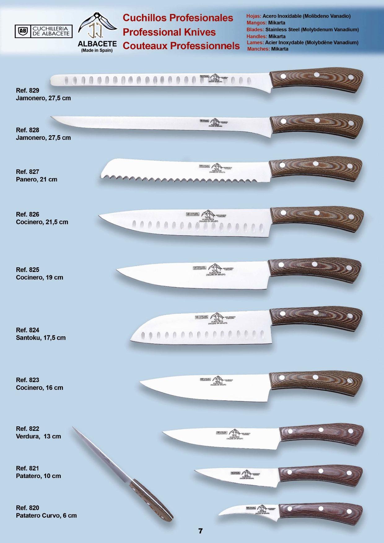 Cuchillos profesionales con hojade acero inoxidable de Molibdeno Vanadio y mangos de arena mikarta.