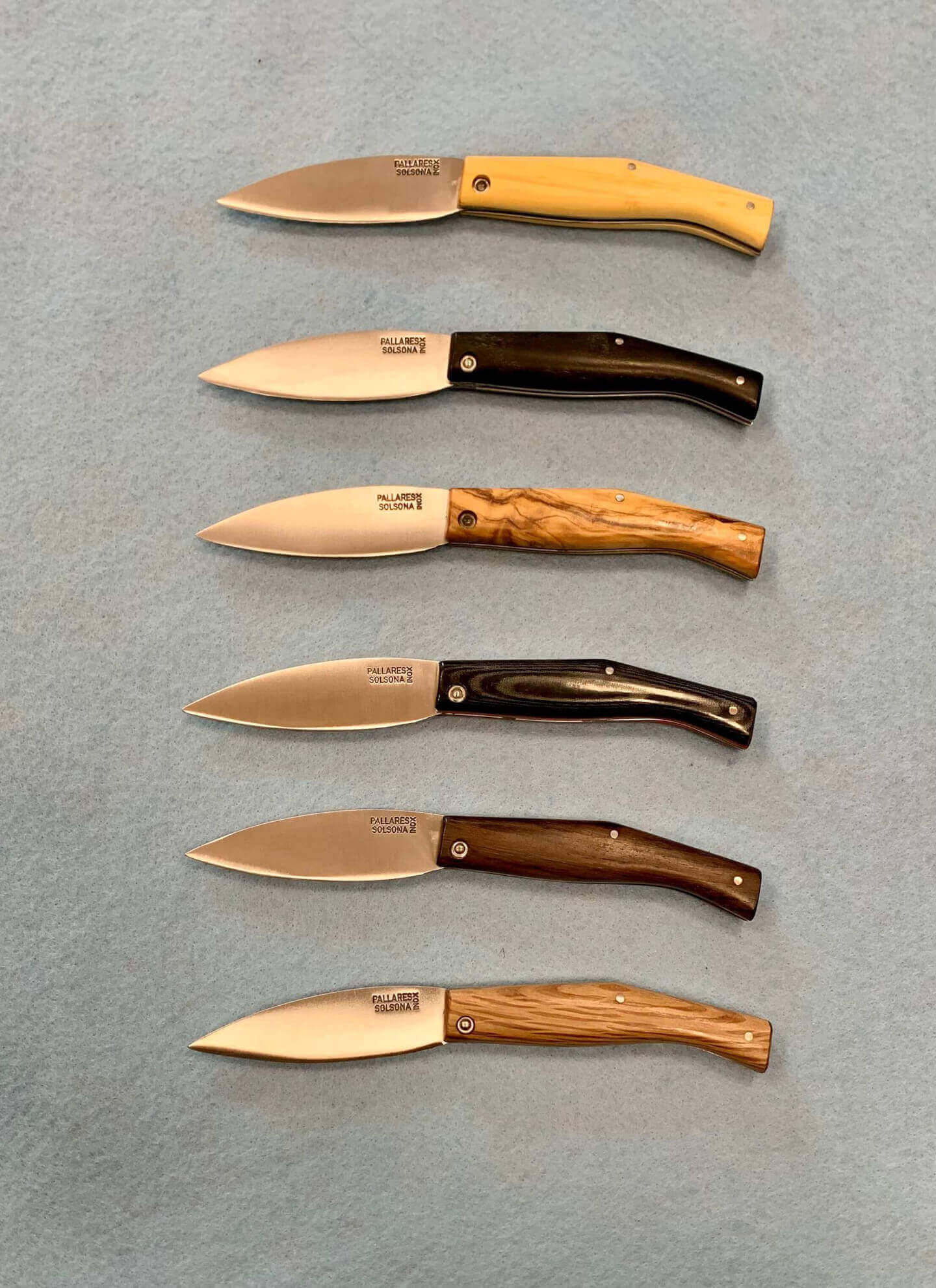 Navajas de bolsillo Pallarés Solsona BUSA con hoja de acero inoxidable de 8 cm y cierre de pistón. Mango de madera de Boj.