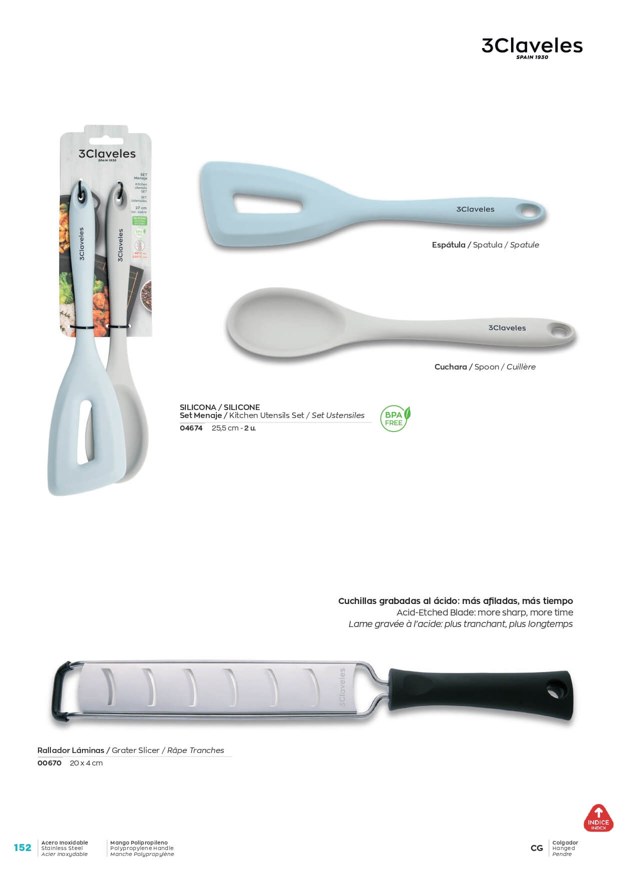 Cuchillas grabadas al ácido: más afiladas durante más tiempo. Mango de polipropileno.