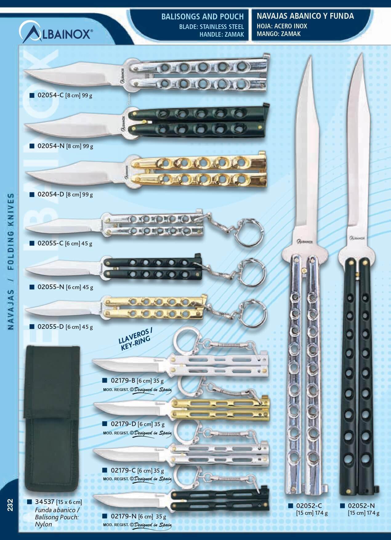 Albainox Balisong Schlüsselanhänger mit goldenem Zamakgriff und 6 cm langer Klinge