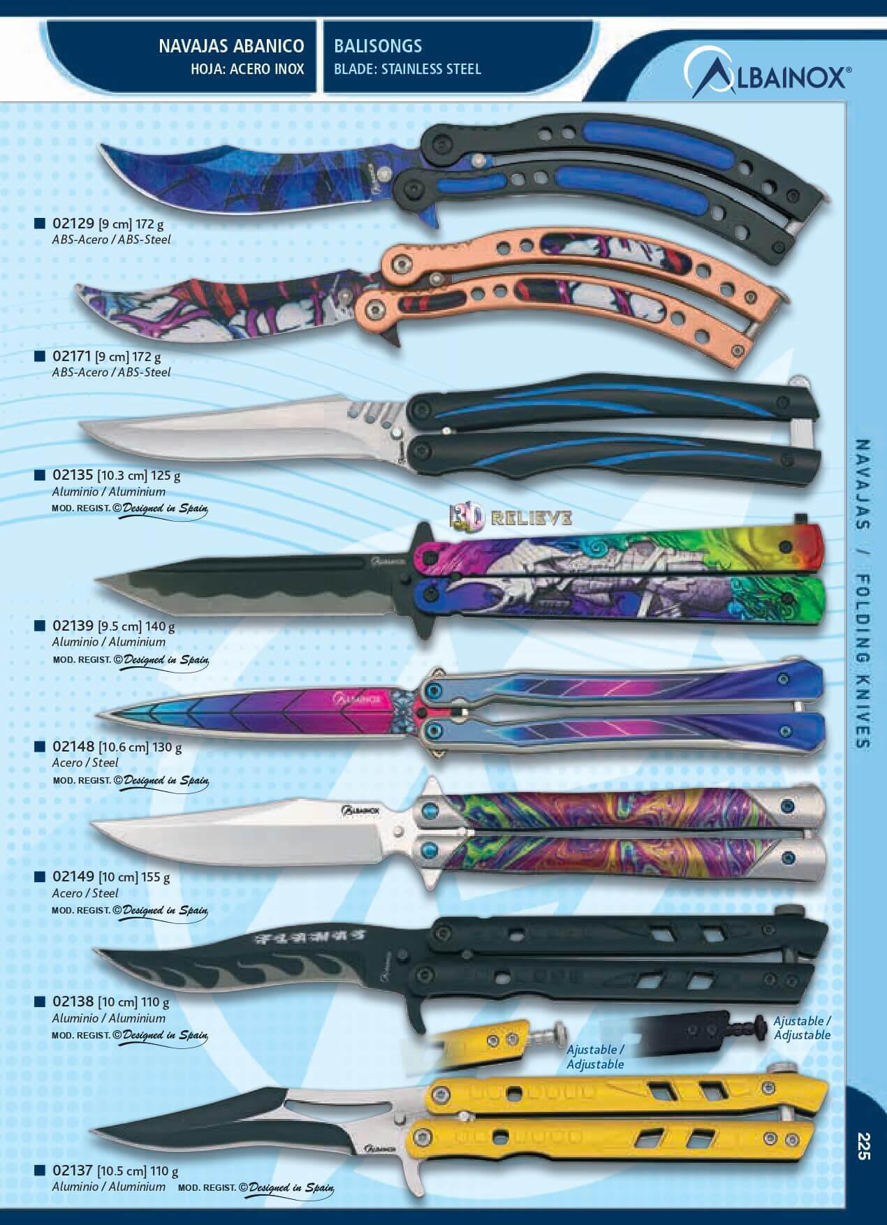 Colorful Blue Albainox balisong with ABS-Steel handle, 172 grams in weight and 9 cm blade