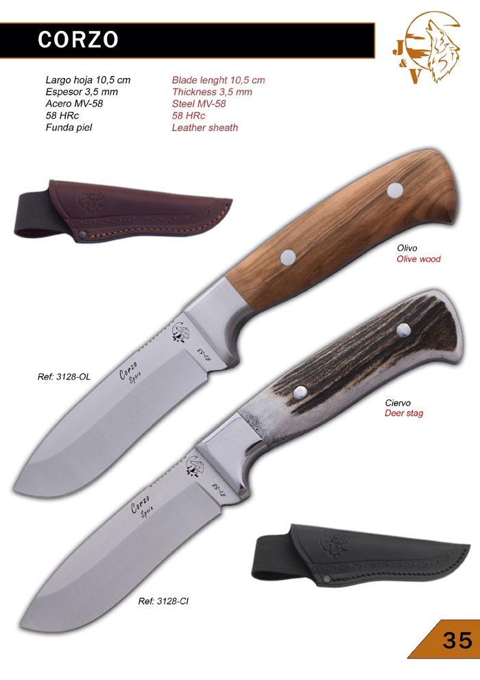 JV Corzo cuchillo de caza con mango de madera de olivo
