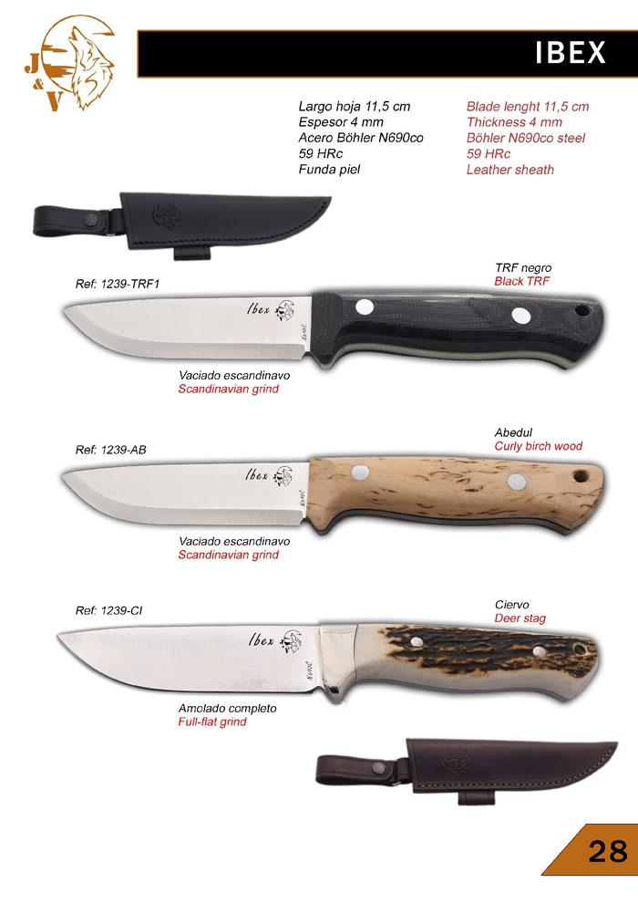 JV Ibex cuchillo de caza con mango de madera de abedul y funda de piel