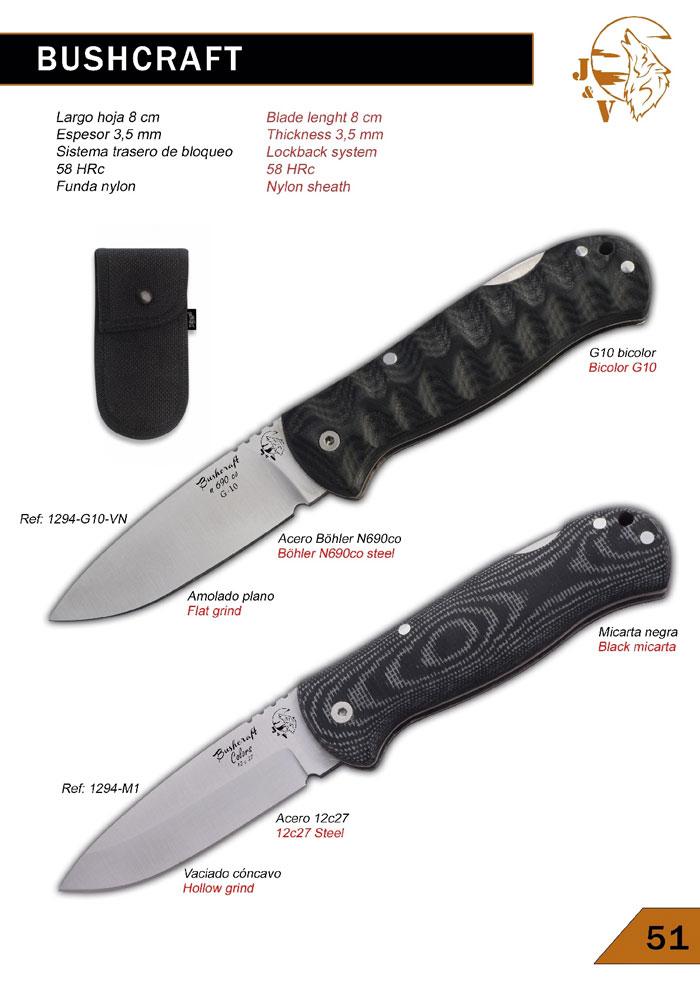 Navaja táctica J&V Bushcraft fabricada en acero Sandvik 12c27. Una navaja ligera, con corte preciso y resistente.