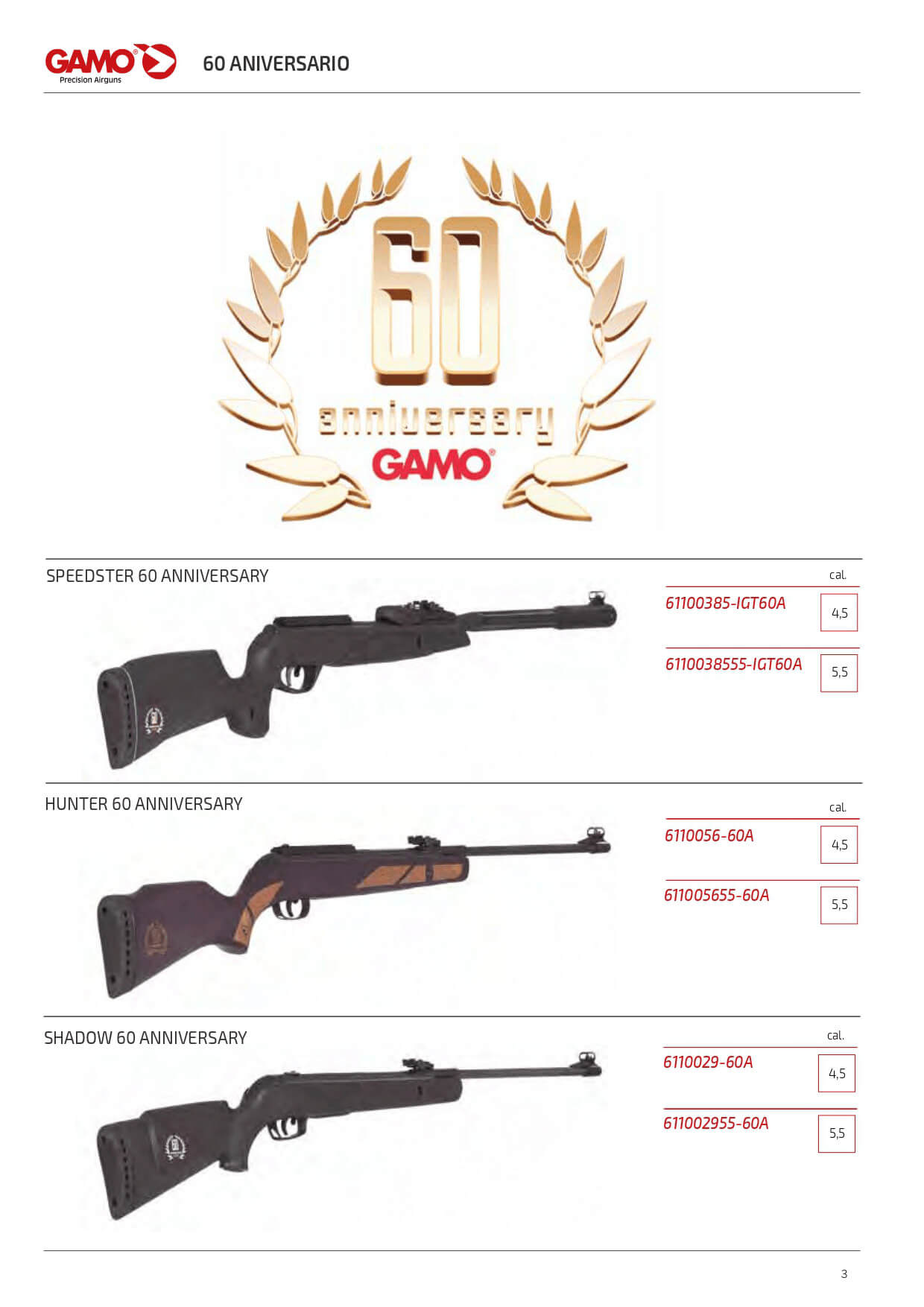 Mythical Gamo 4.5 or 5.5 mm air rifles in a special limited and numbered edition for the 60th anniversary of the Spanish air rifle house par excellence.