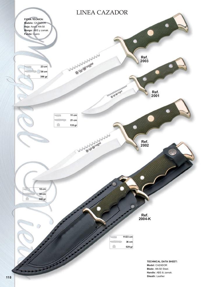 Cuchillos de caza con una longitud total de 36 cm. Su hoja tipo Bowie es de acero AN-58 y tiene una longitud de 11 y 23 cm.