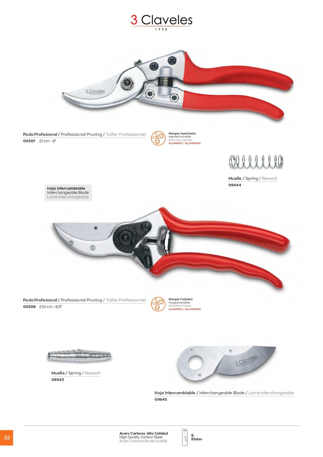 Gartenschere mit austauschbarer Klinge und geschmiedetem Aluminiumgriff 3 Claveles