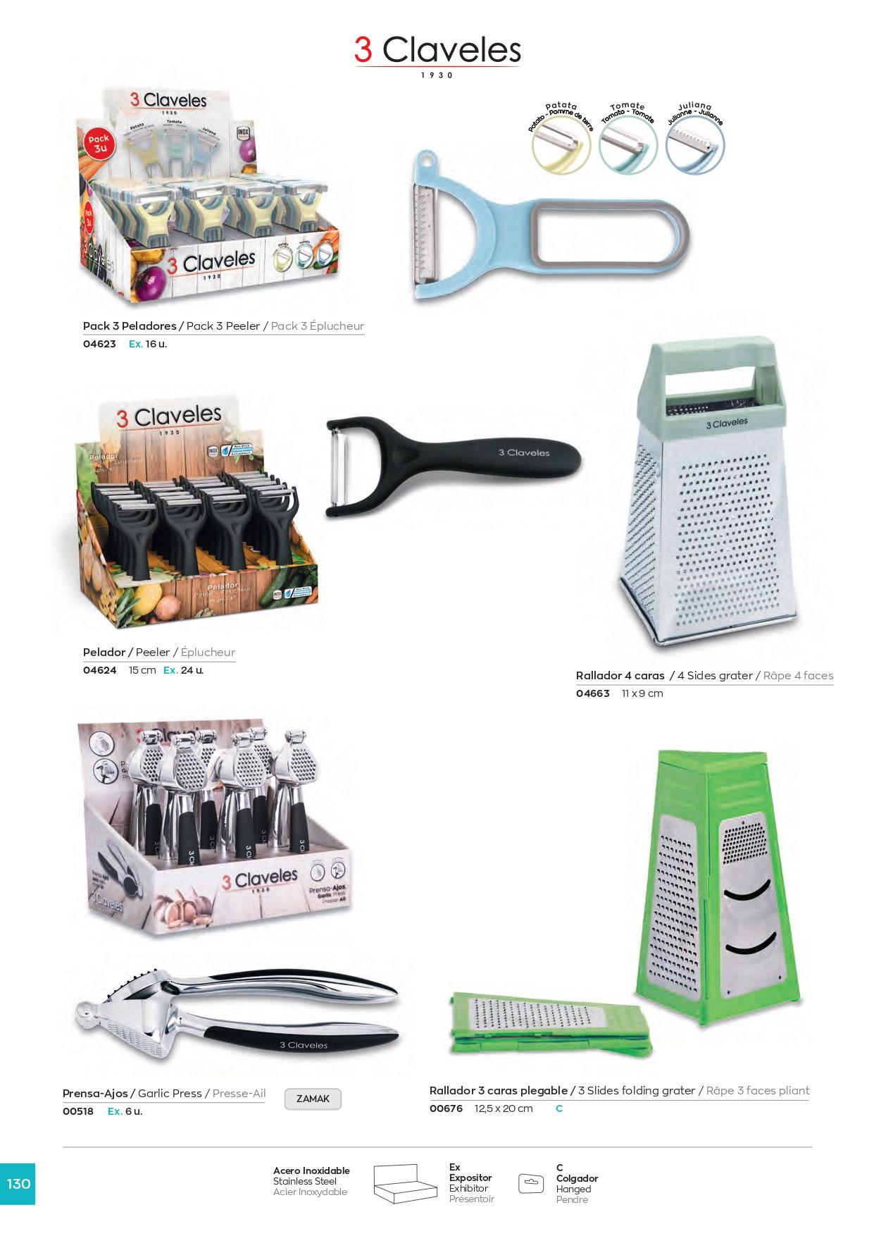 Espositore da 16 unità, confezione da 3 pelapatate colorate per patate, julienne e pomodori, 3 Claveles