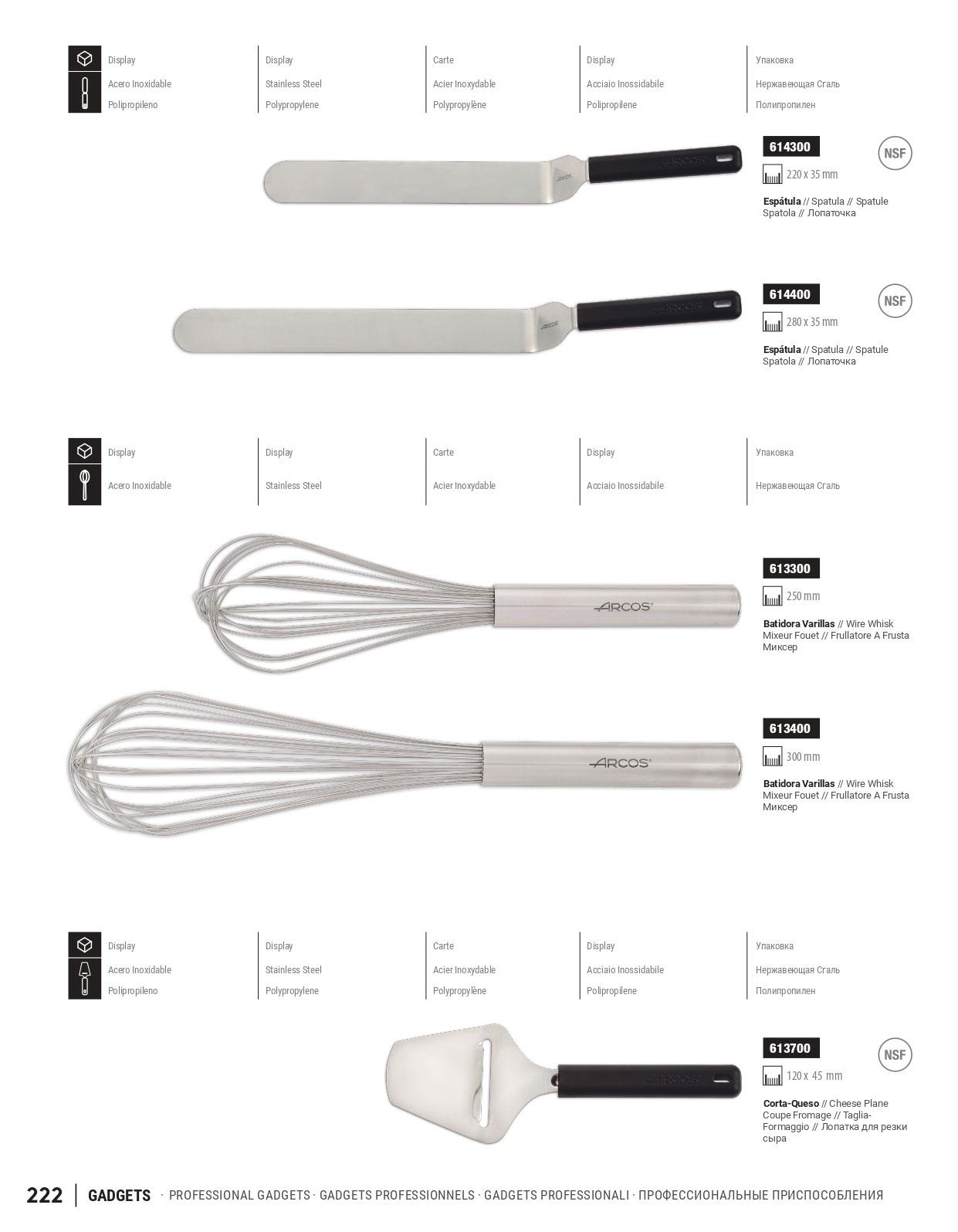 Espátula angulada em aço inoxidável com cabo de polipropileno.