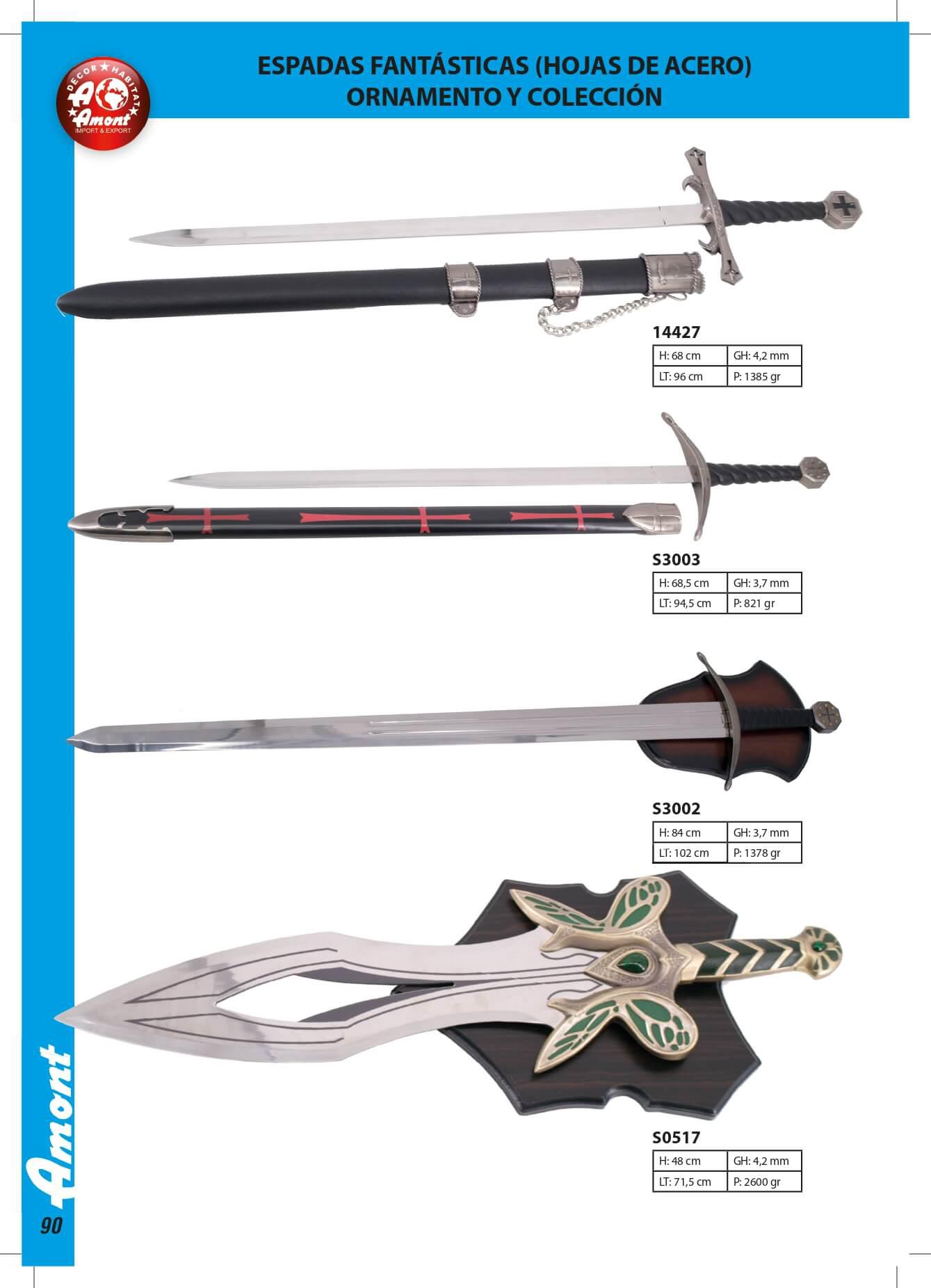 Espadas fantásticas com chapas de aço, ornamentais e cobrança.