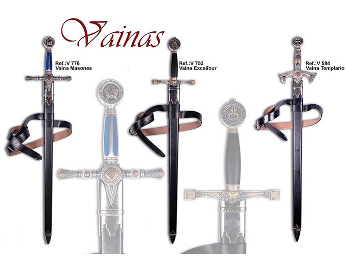 Bainhas maçons, Excalibur e espadas dos Templários.