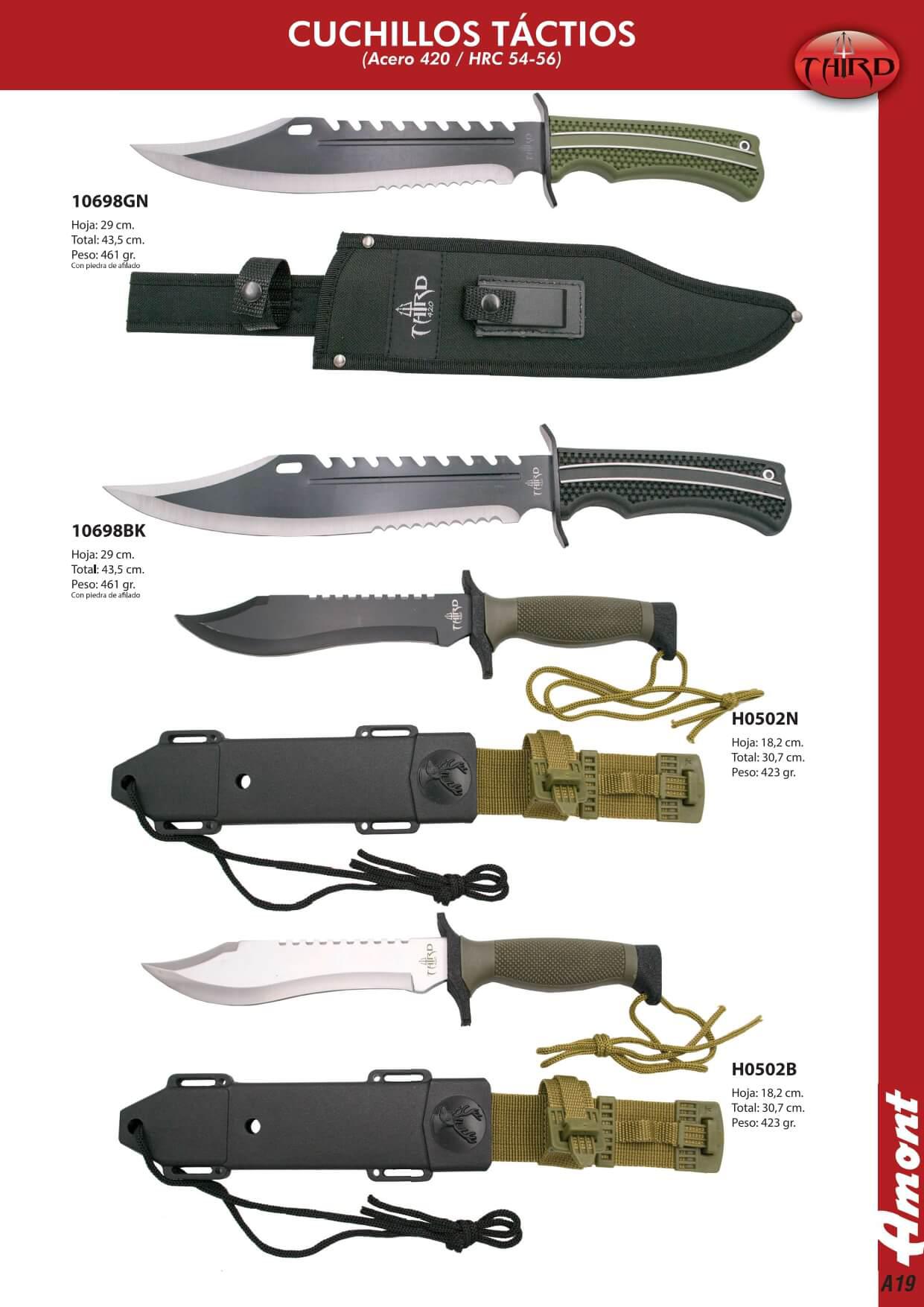 Facas militares com lâmina de aço 420 (HRc 54-56). Pegas de ABS.