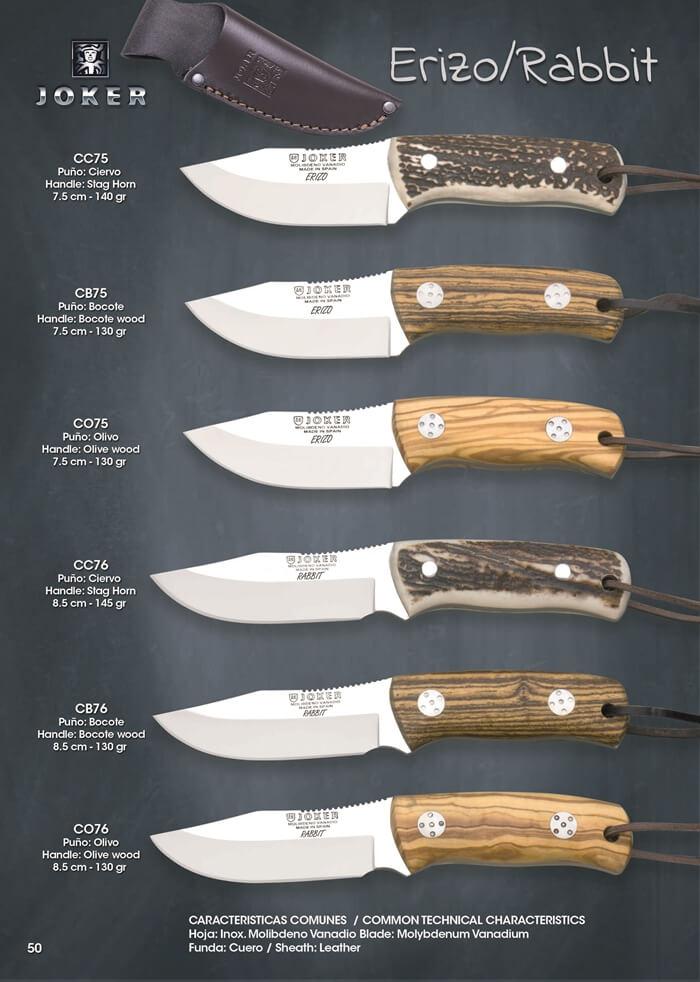 Faca bushcraft Joker Rabbit com cabo em madeira de oliveira