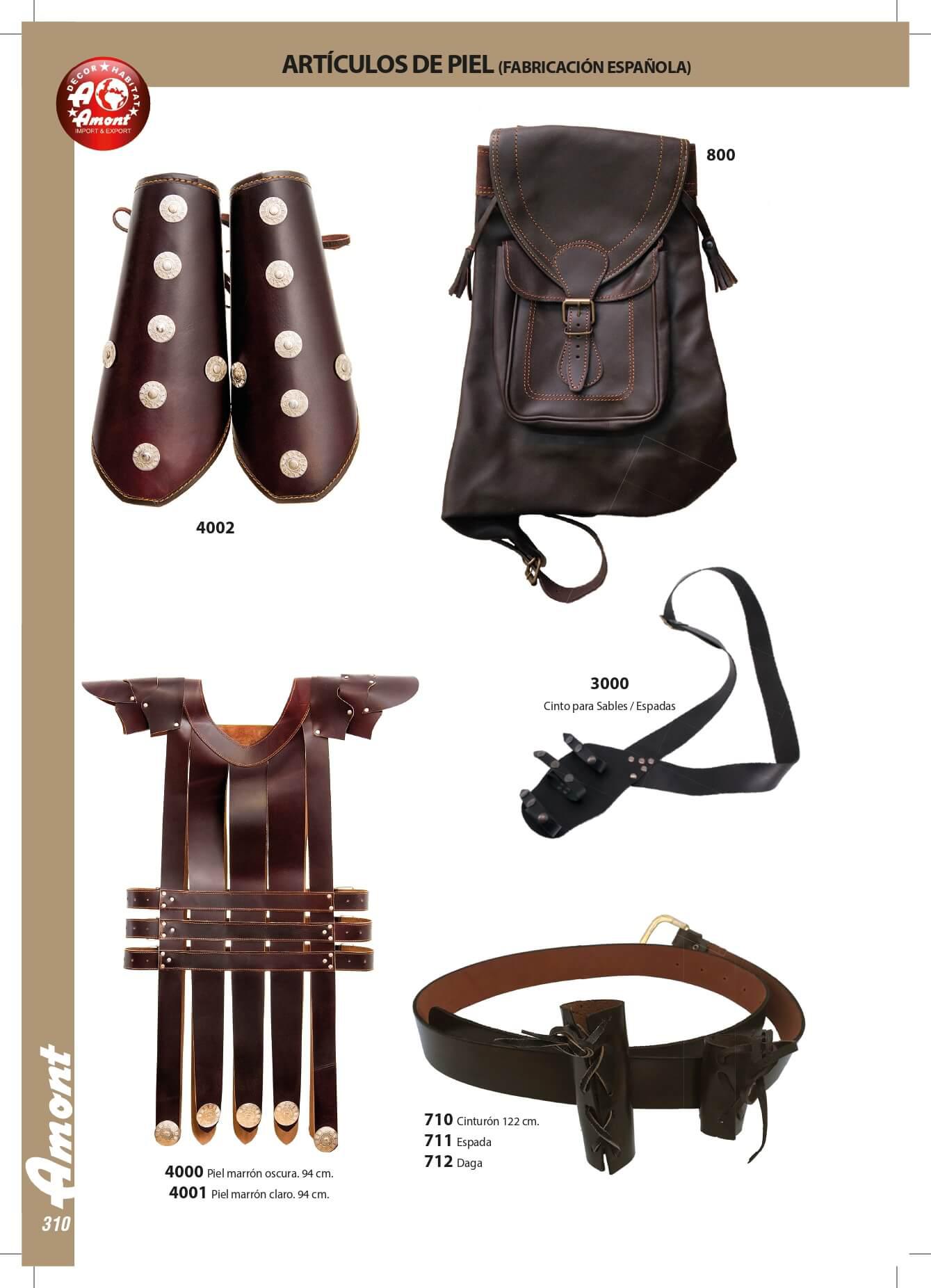 Artigos de couro: estojos, chicotes, chapéus, bolsas de couro e chicotes.