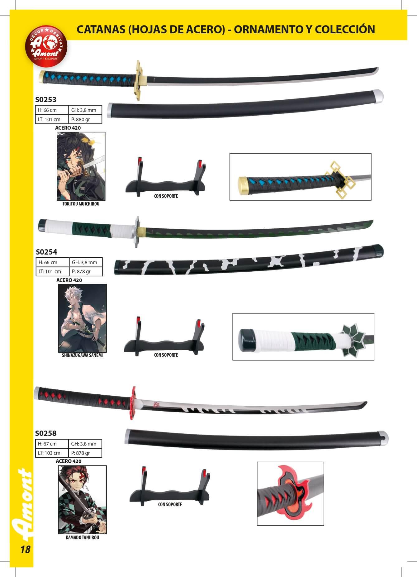 Katanas Demon SlayerComprimento da lâmina: 66 cm. Comprimento total: 101 cm. - S0253: Tokitou Muichirou - S0254: Shinazugawa Sanemi