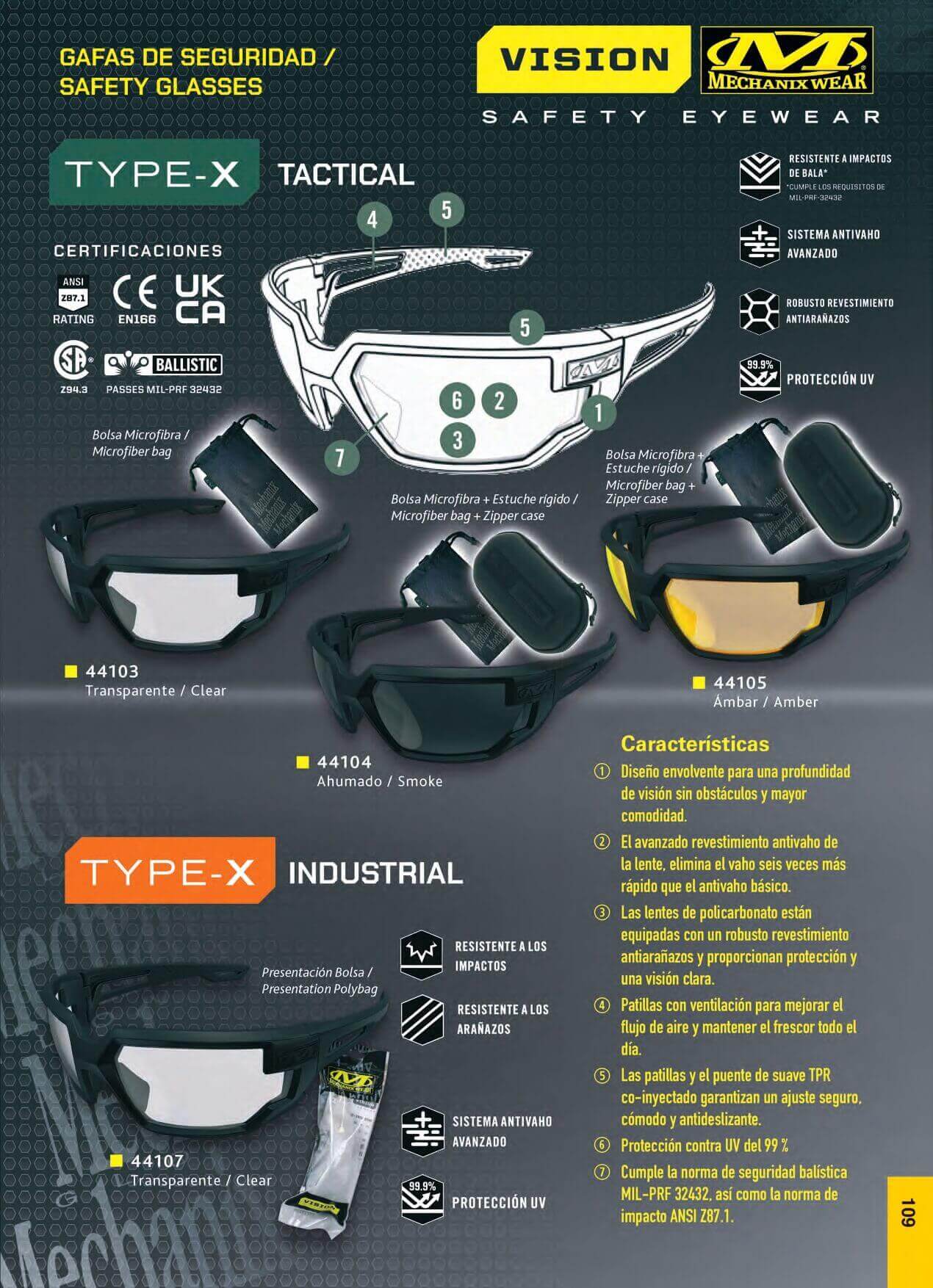 Óculos de segurança táticos transparentes Mechanix Type-X resiste...