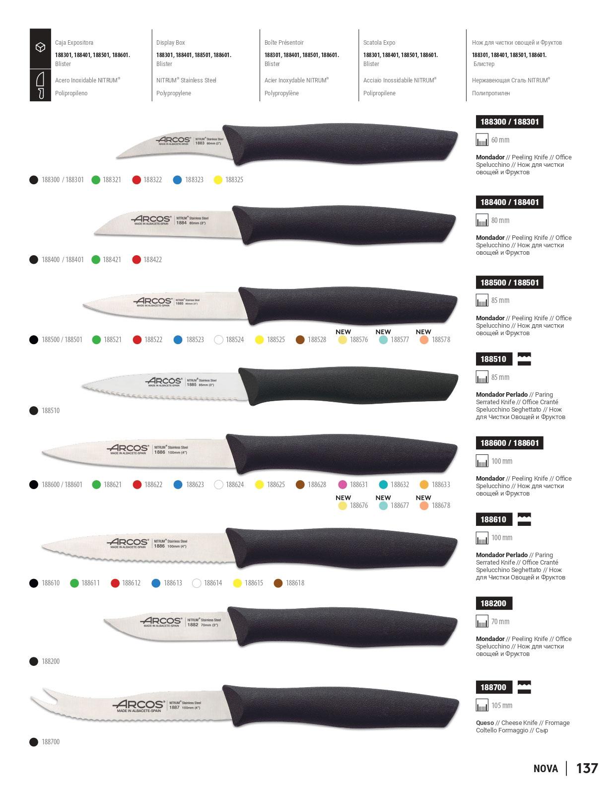 Descascadores facas feitas de NITRUM aço inoxidável. Com a alavanca de polipropileno.