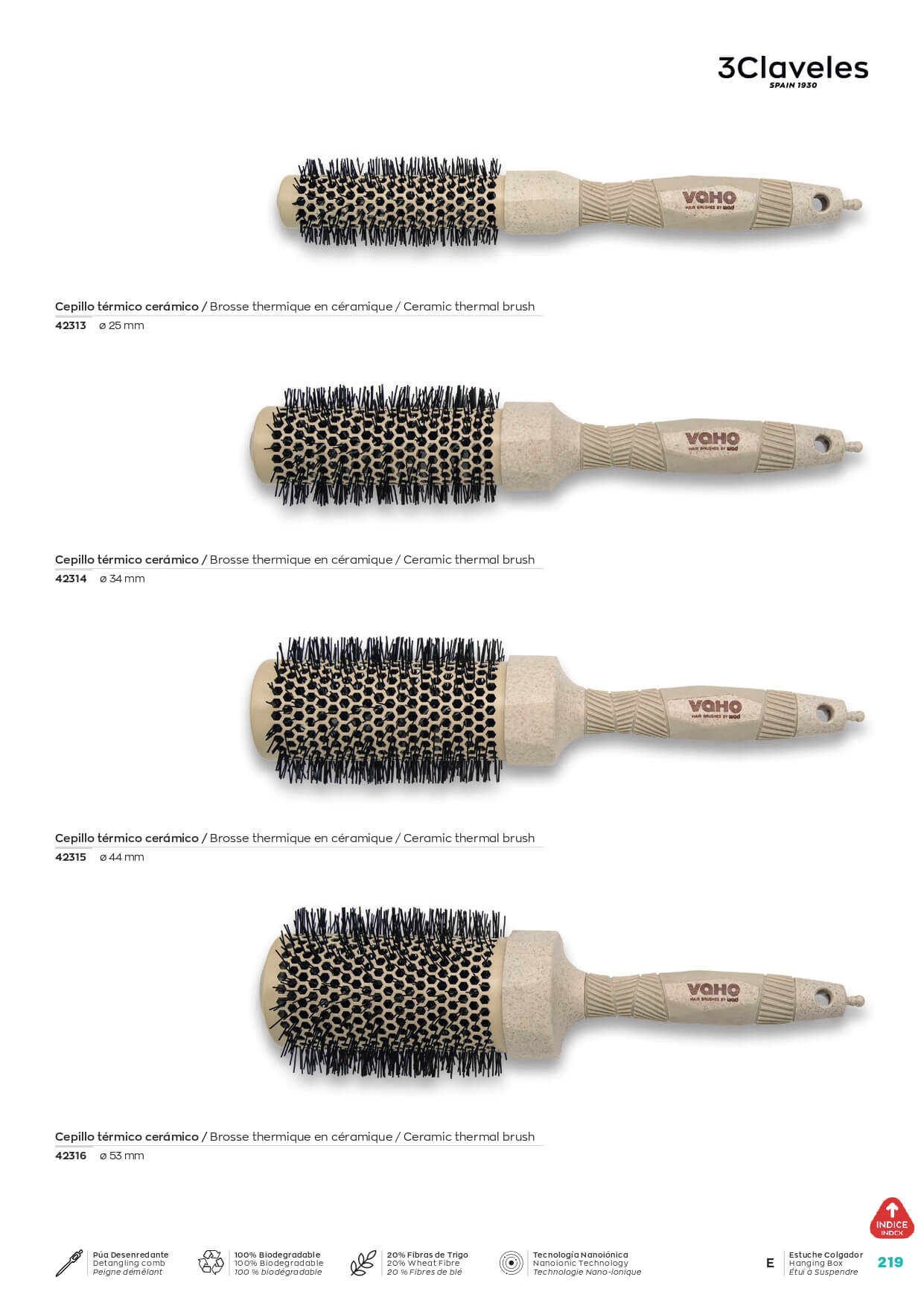 Escovas térmicas em cerâmica com cerdas desembaraçantes