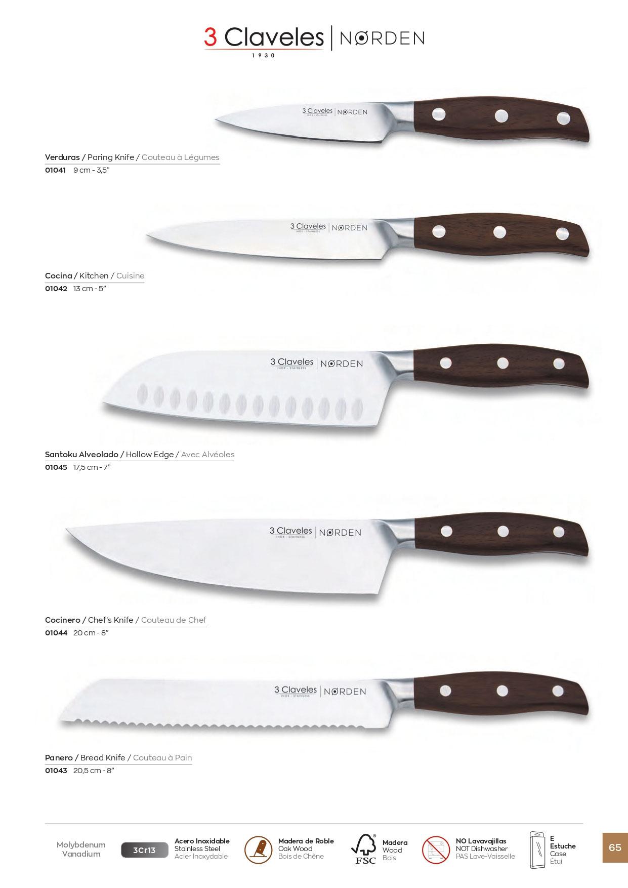 FACAS DE COZINHA NORDEN Facas forjadas em aço inoxidável 3Cr13. Cabo em madeira de carvalho resistente à umidade.