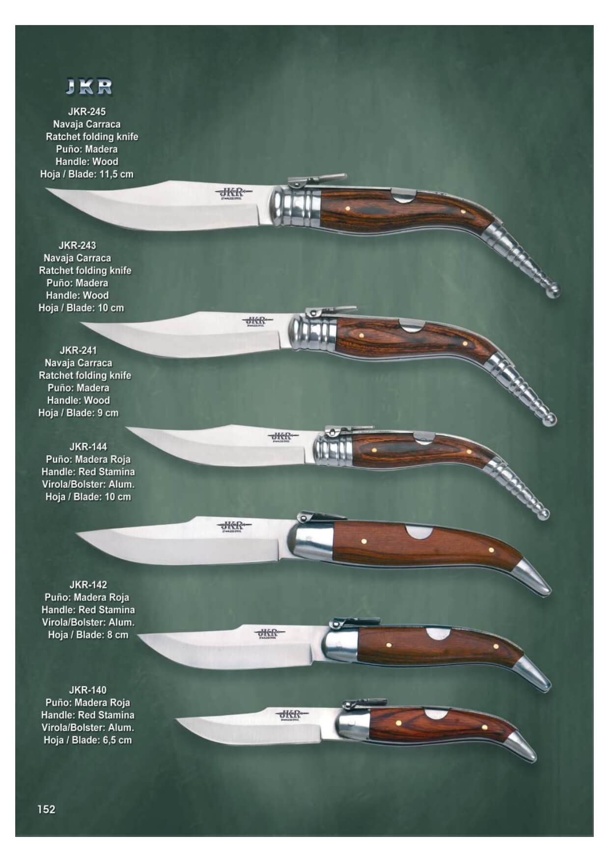 Canivete estilo Albacete com cabo em madeira vermelha e reforço e...