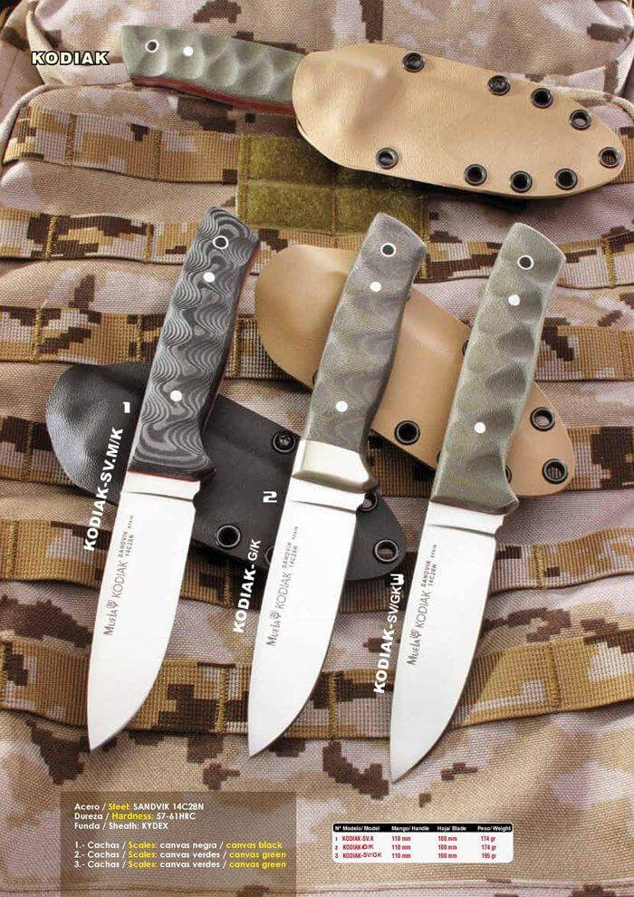 Facas Kodiak, aço Sandvik 14C28N, e lidar com lona de cor diferente. Inclui Kydex bainha.