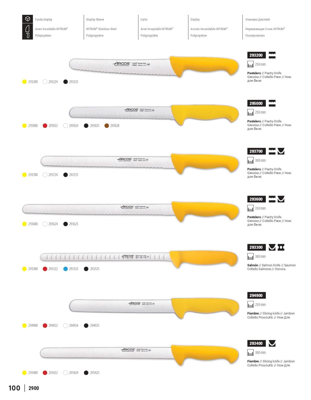 Facas de açougue com lâminas resistentes de aço inoxidável NITRUM. Uma série concebida para profissionais da indústria, facas económicas e úteis, com uma variedade de cores para uma melhor organização. Facas de presunto, facas de pastelaria, facas de salsicha...