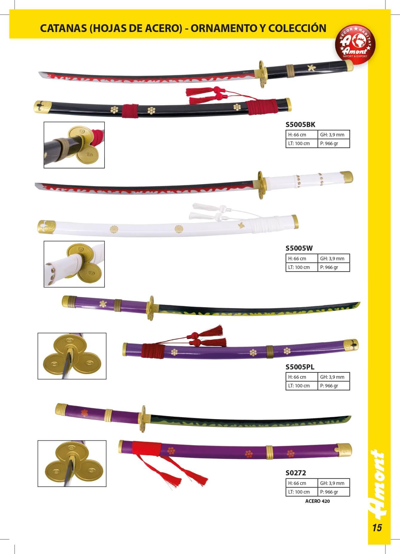 Katana Enma - One Piece Comprimento da lâmina: 66 cm. Comprimento total: 106 cm. - S5005BK: preto e vermelho. - S5005W: branco e ouro.