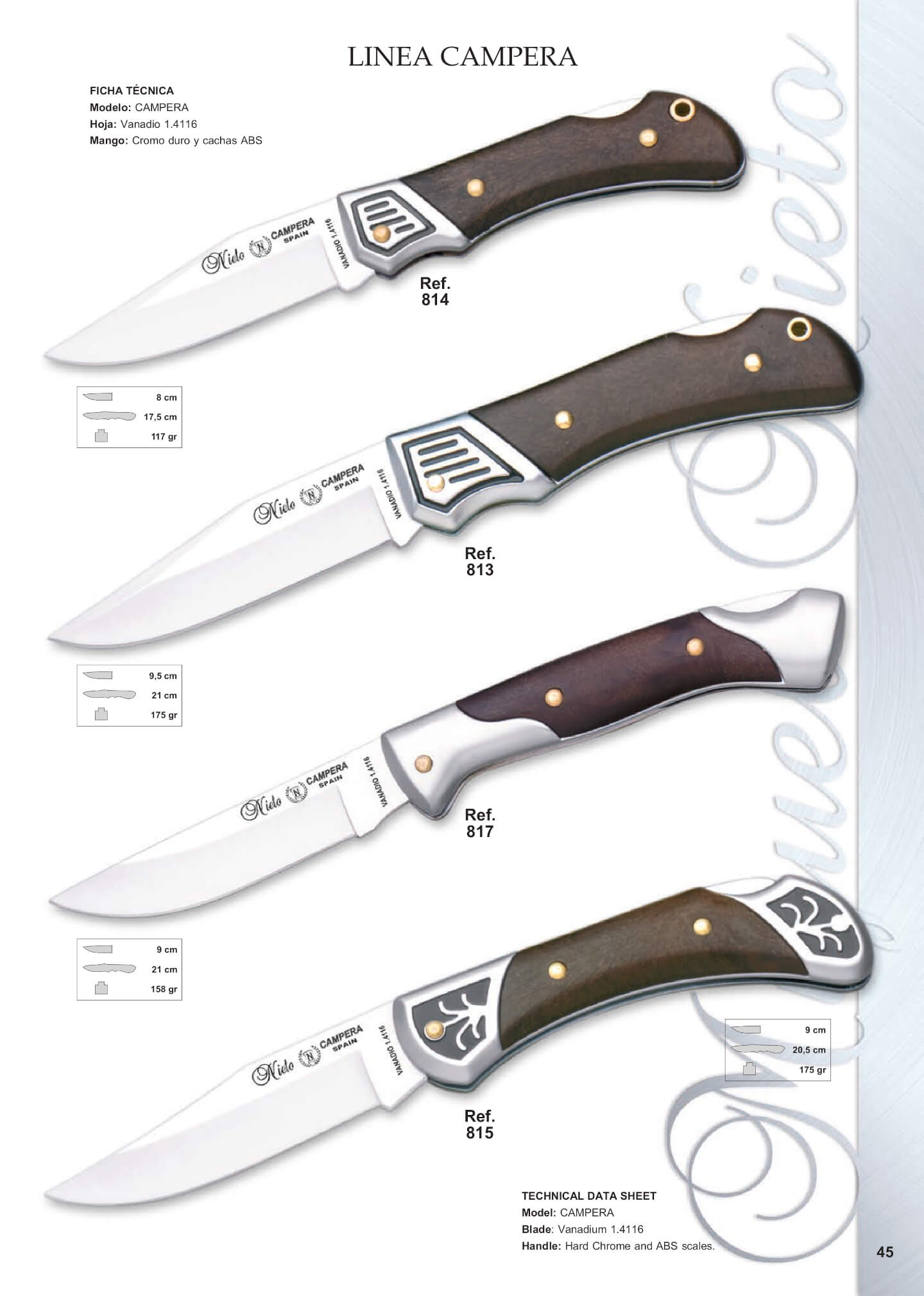 Comprimento da lâmina: 8 cm. Comprimento total: 17,5 cm. Peso: 117 grs.