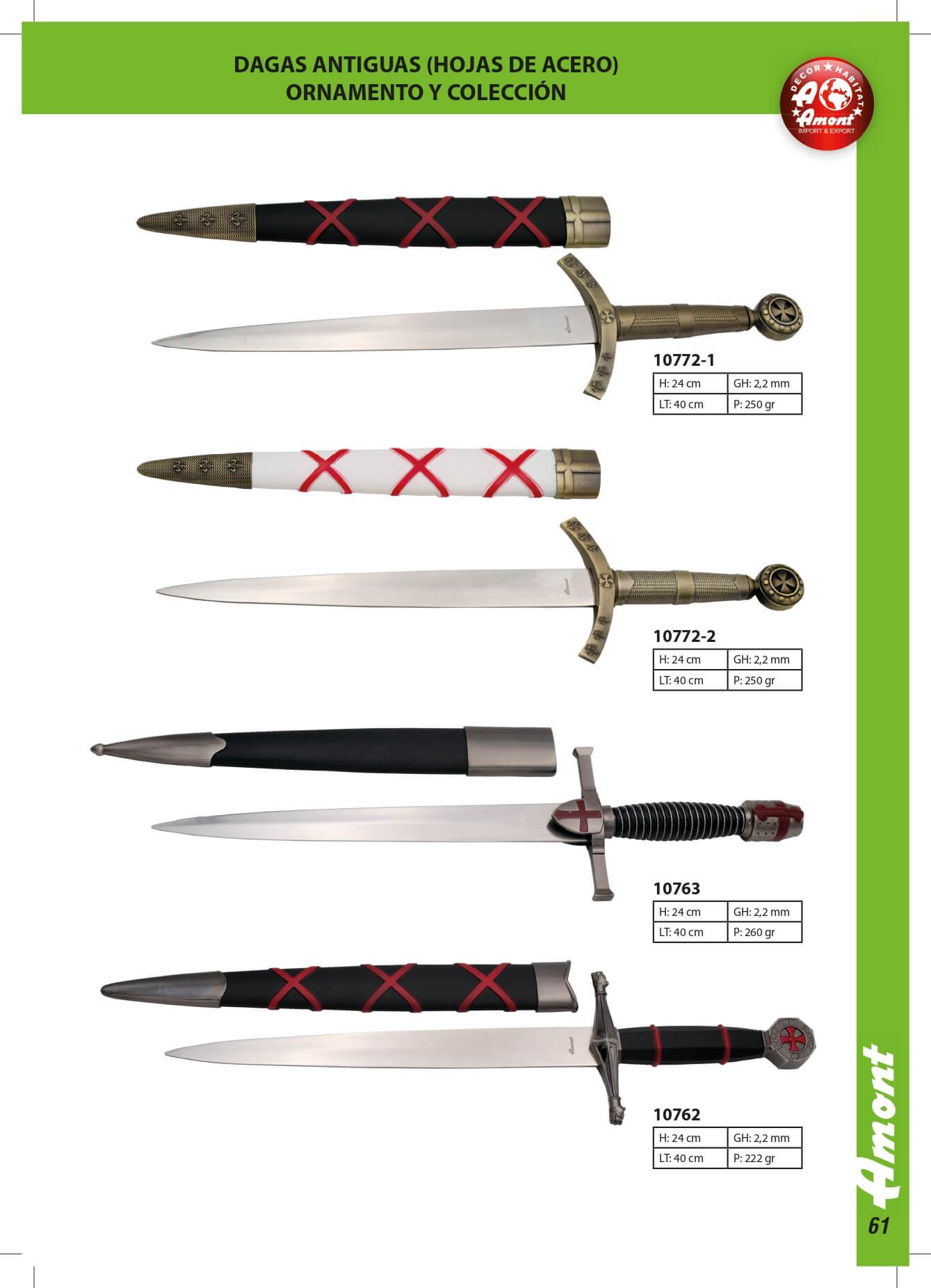 Punhais antigos com lâmina de aço para ornamento e coleção.