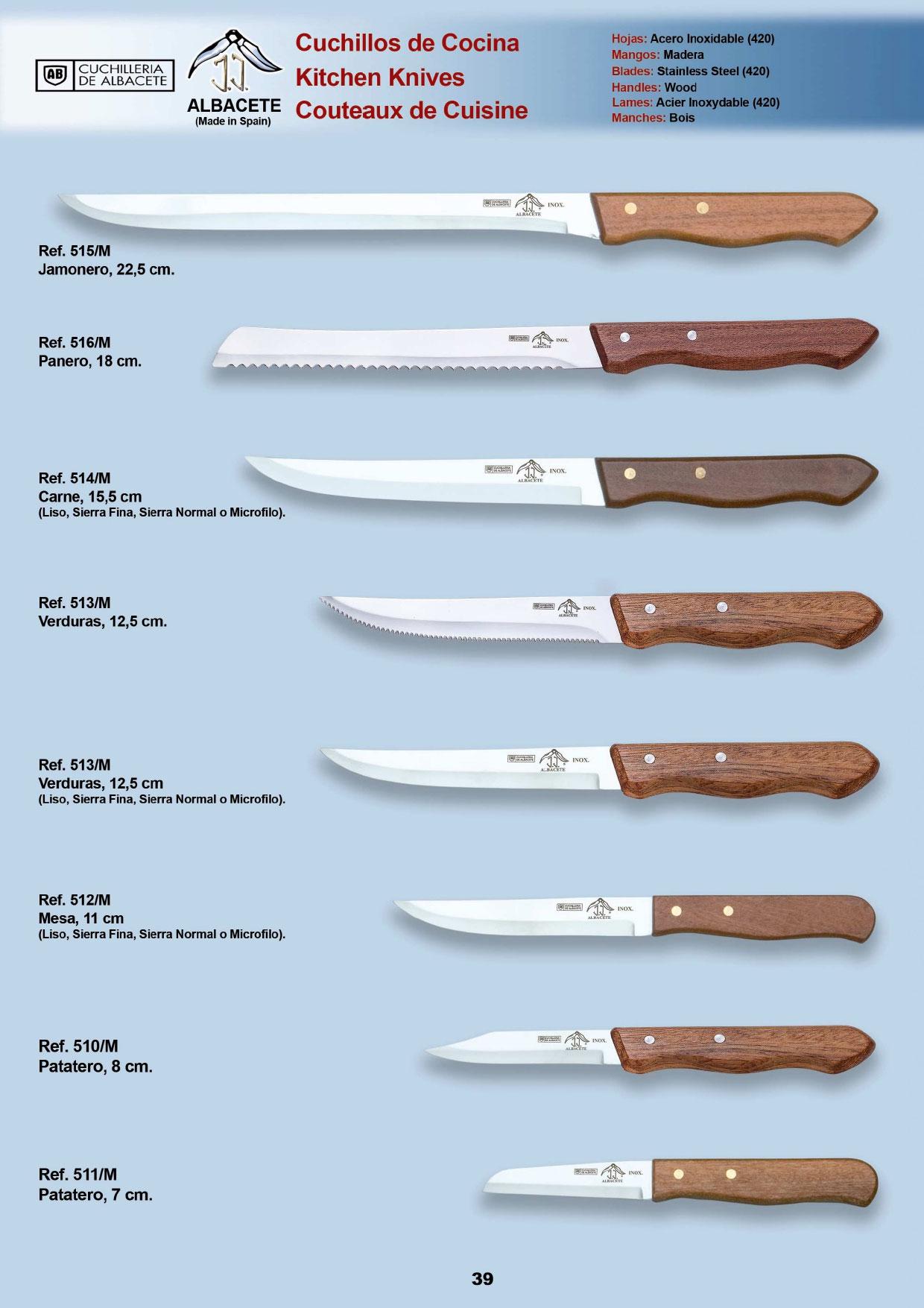 Cuchillos de cocina. Jamonero, carne, mesa, patatero