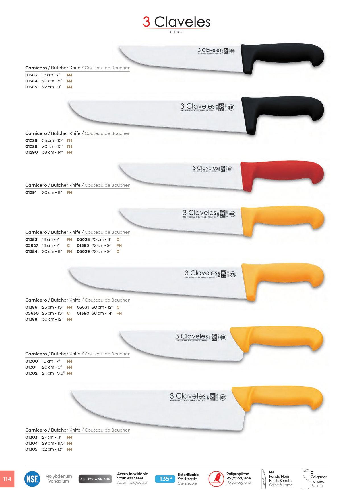 Cuchillo carnicero 3 Claveles hoja de 36 cm y mango de polipropil...