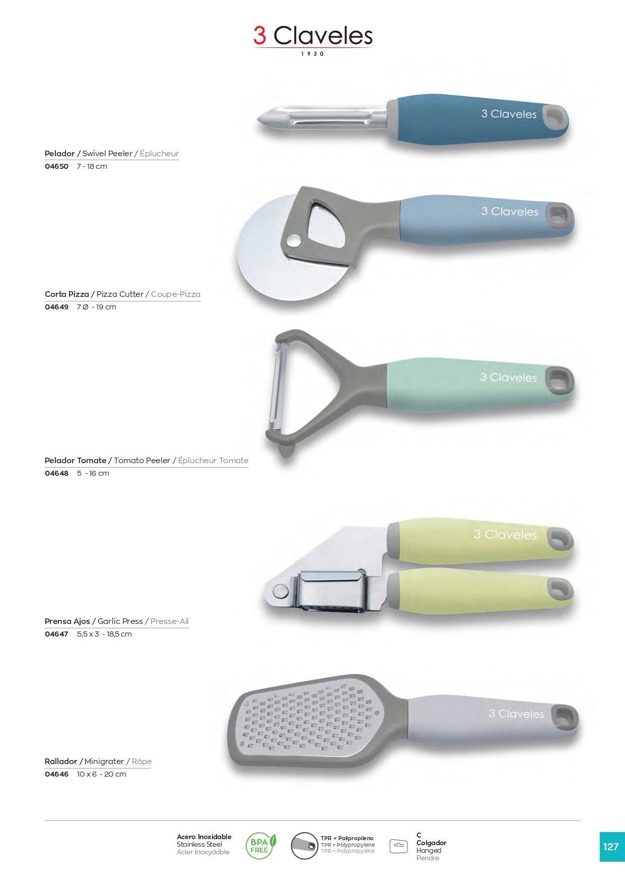 Pelador de acero inoxidable con mango de TPR y polipropileno 3 Cl...