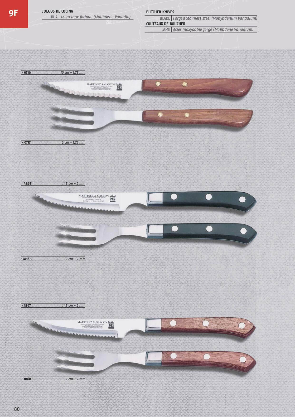 Tenedor chuletero forjado con mango de madera prensada Martinez y...
