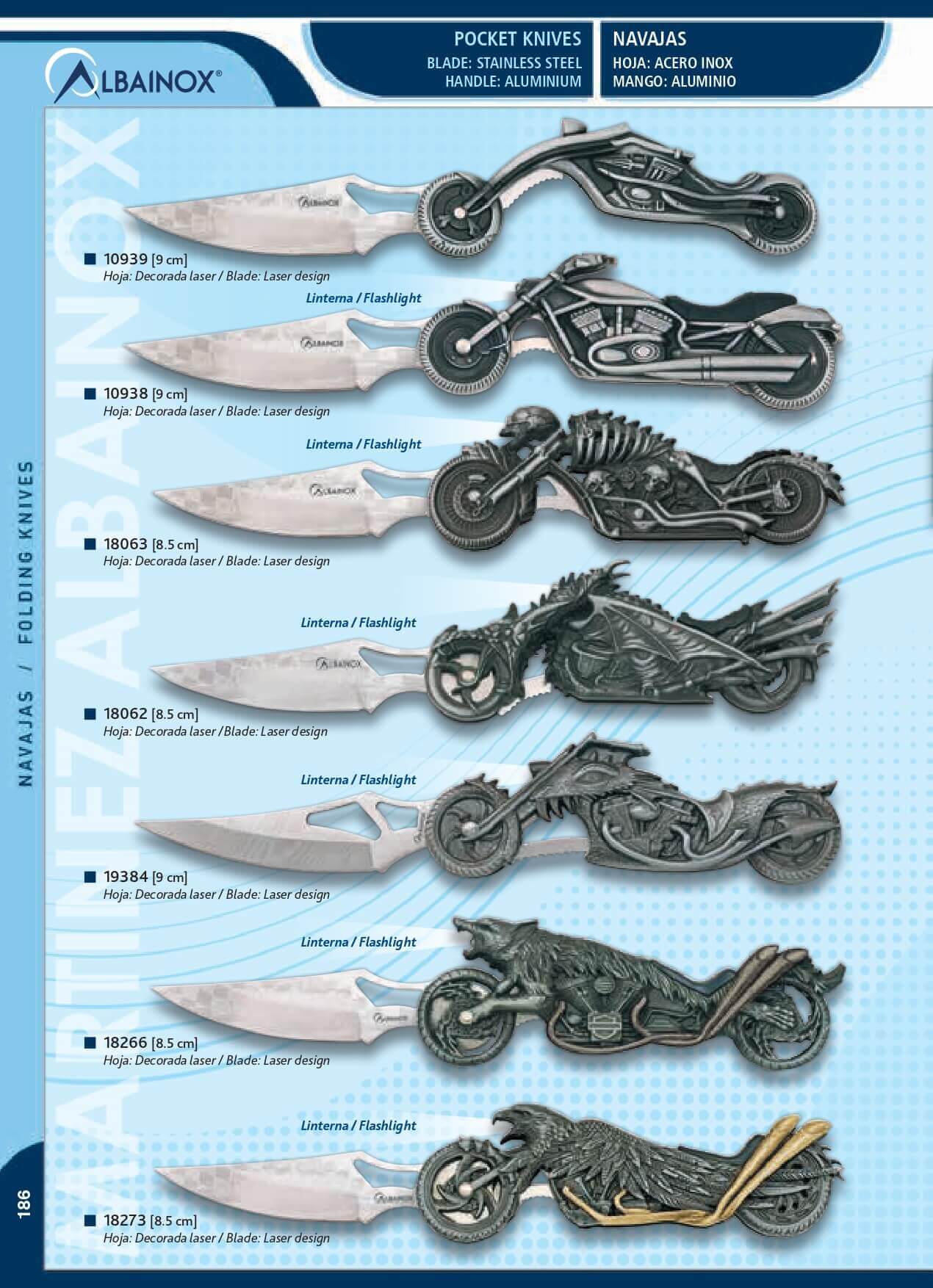Navaja Albainox con mango en forma de moto, luz y hoja de 9 cm