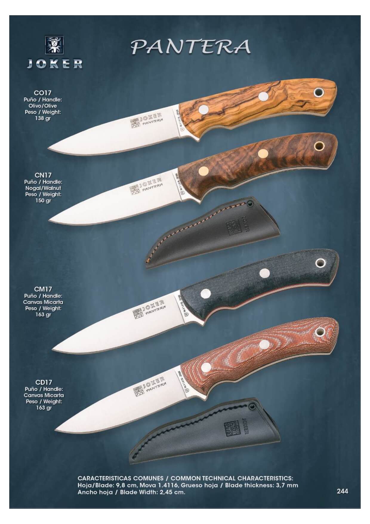Cuchillos enterizos con hoja de acero Molibdeno Vanadio de 9.8 cm de longitud y 3.7 mm de grosor.