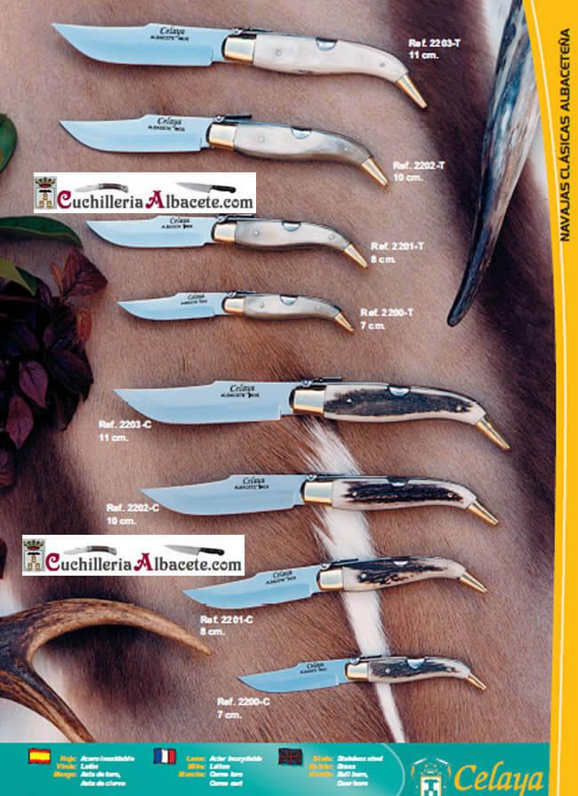 2203-C, 2202-C, 2201-C, 2200-C Navaja clásica albaceteña con hoja de acero inoxidable y mango de asta de ciervo.