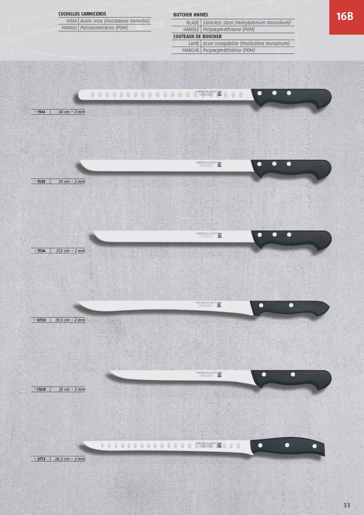 Cuchillos jamón y salmón. Mango de polipropileno.