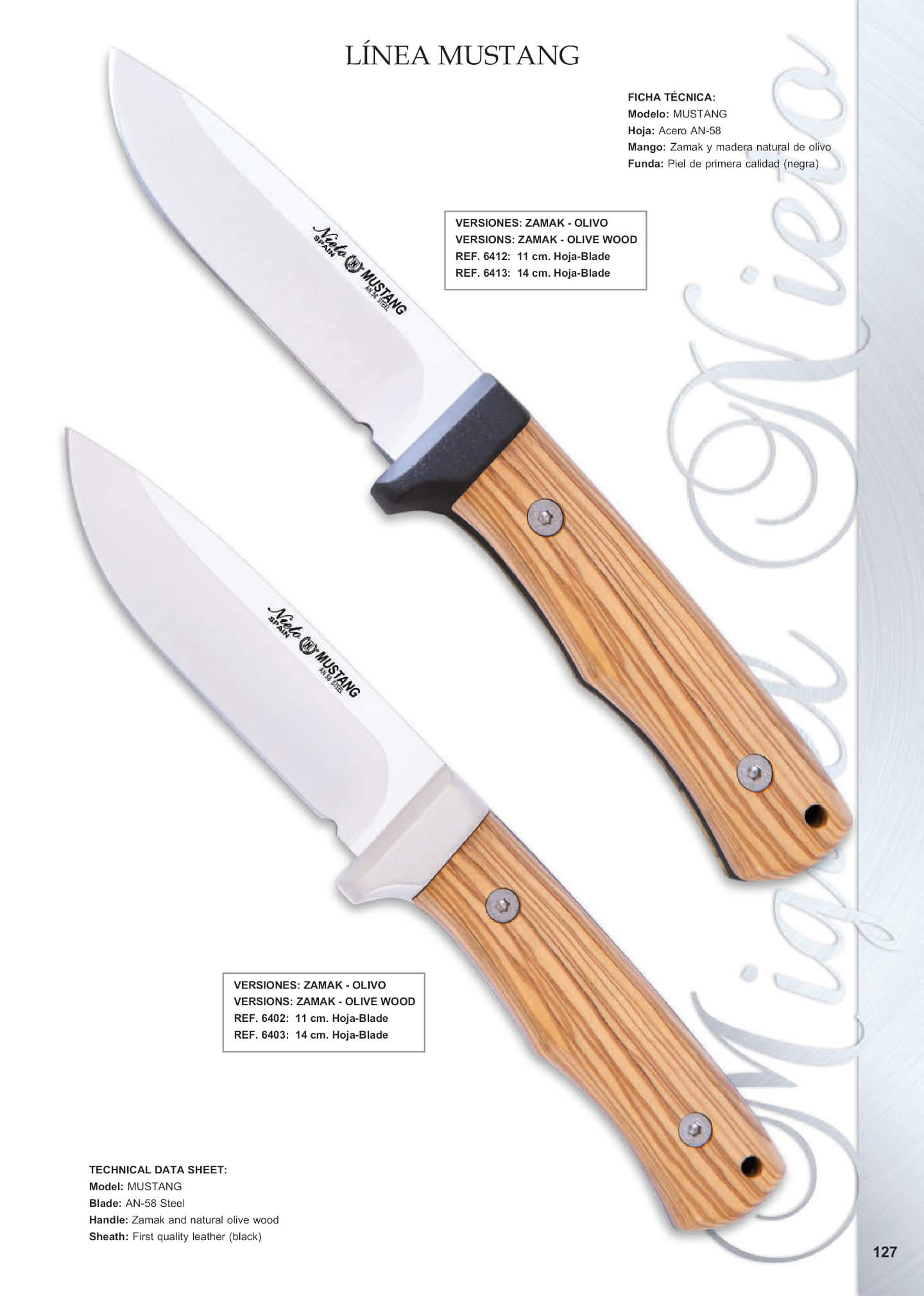Longitud de hoja: 14 cm. Longitud total: 26 cm. Peso: 256 grs. Funda marrón.