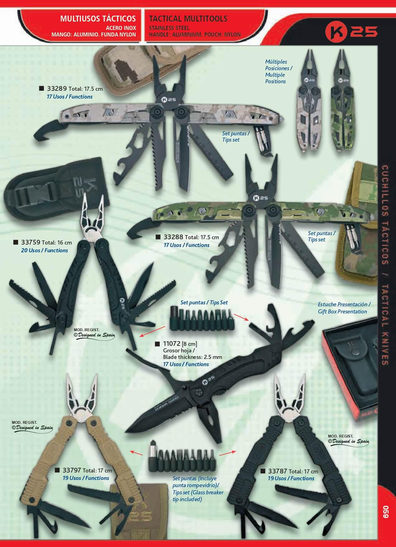 Navaja multiusos táctica K25 de 17 funciones, mango de aluminio e...