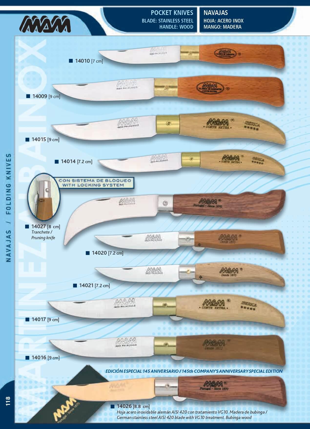 Navaja MAM Iberica con mango de madera, bloqueo lineal y hoja de ...