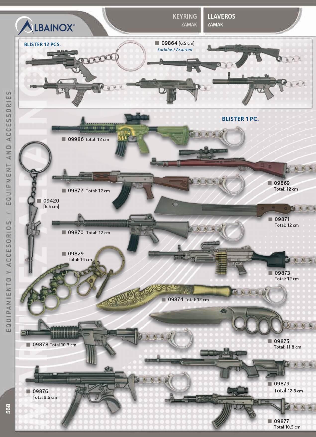 Surtido de llaveros con armas presentados en blíster de 12 unidad...