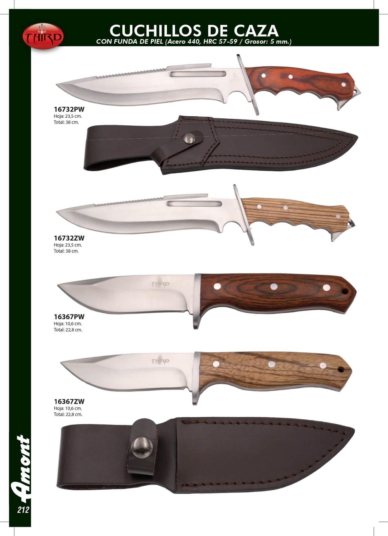 Acero 440. HRC 57-59. Grosor 5 mm. Incluye funda de piel.