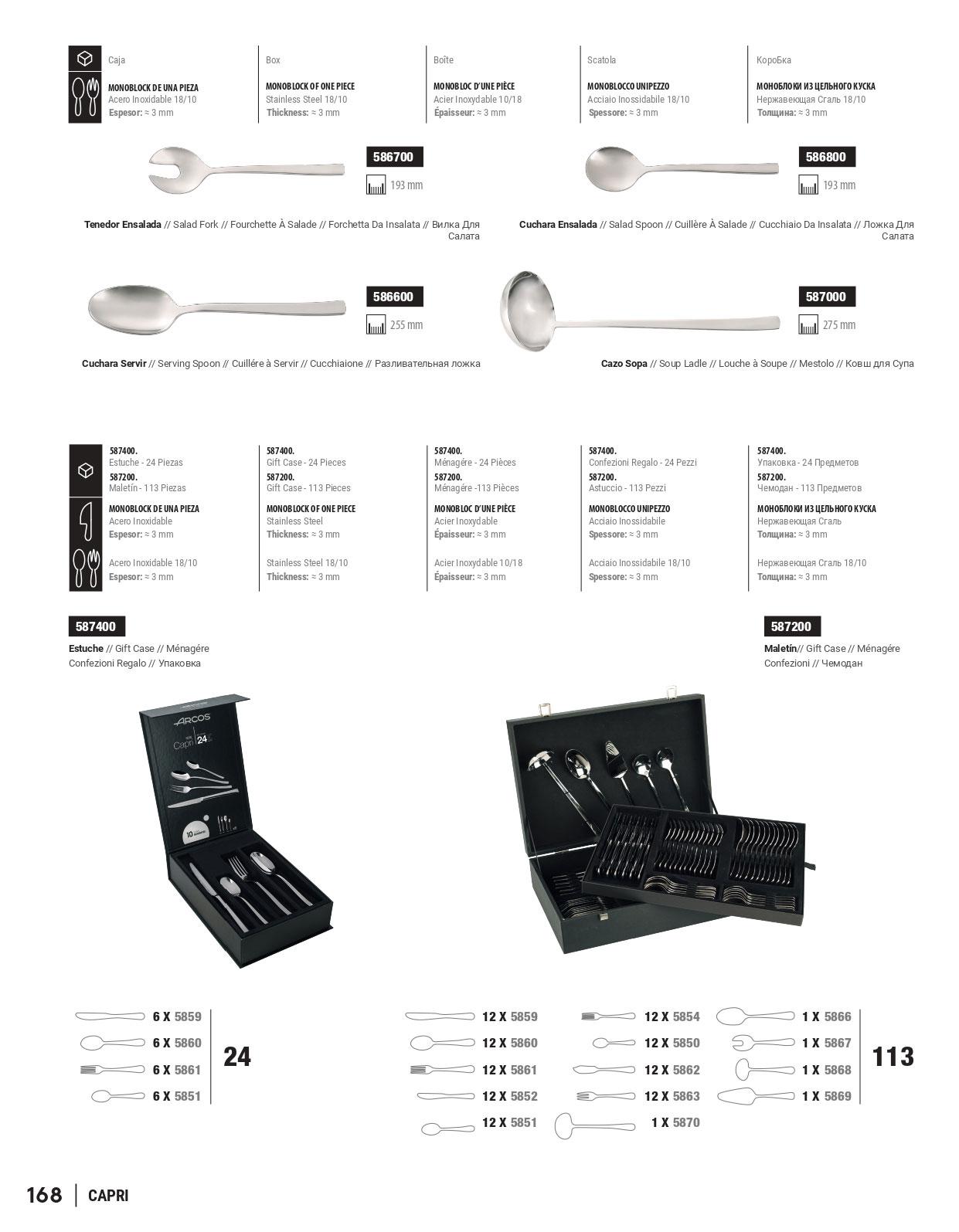 Cubiertos de la serie CAPRI. Con hoja y mango de acero inoxidable 18/10.