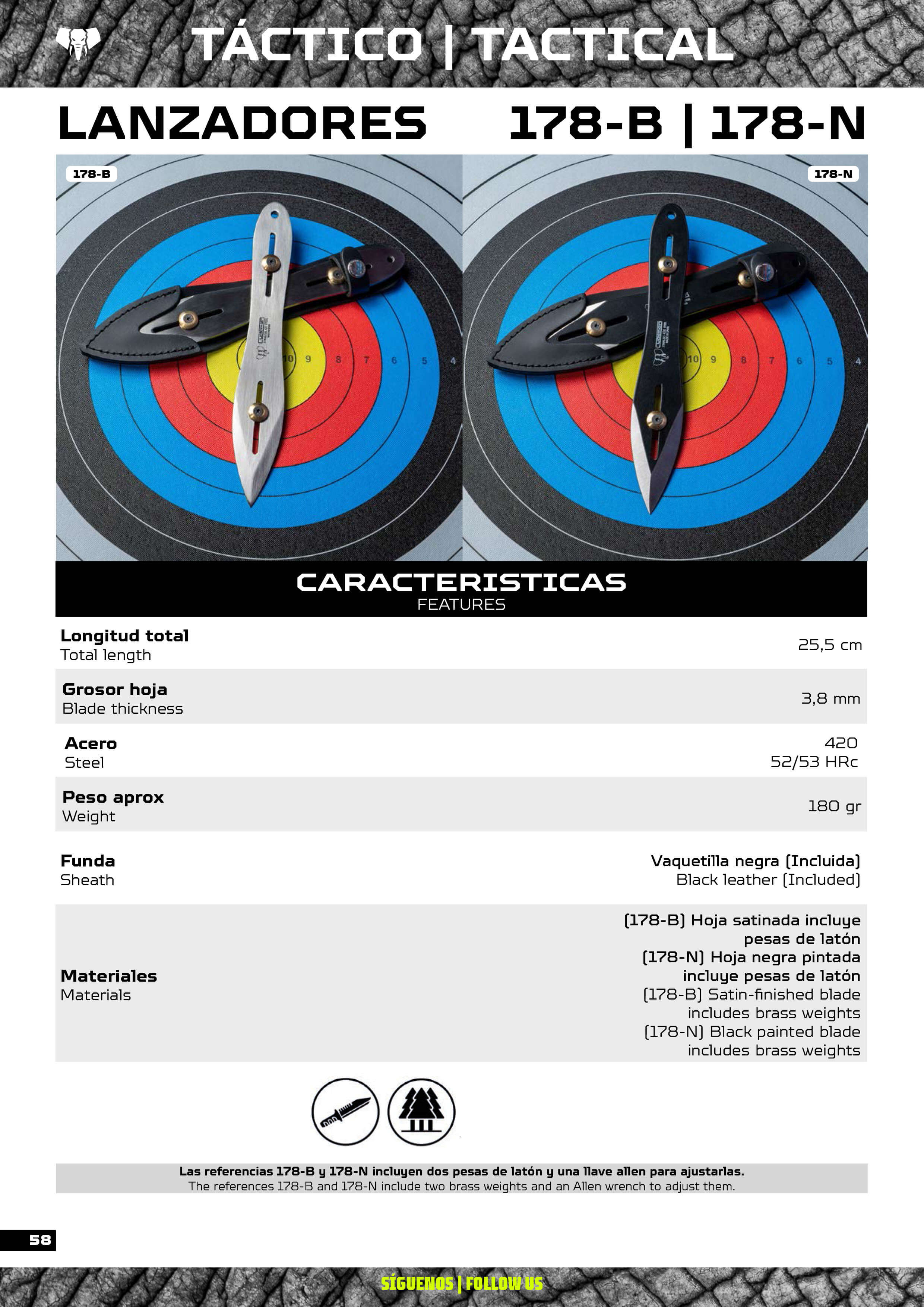 Cuchillo lanzador Cudeman color gris. Acero 420. 25,5 cm
