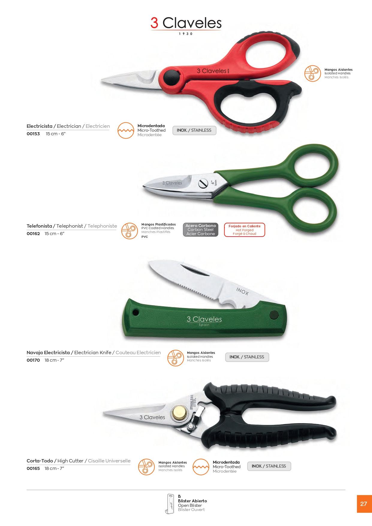 Tijeras corta todo de 18.5 cm con mango aislante 3 Claveles