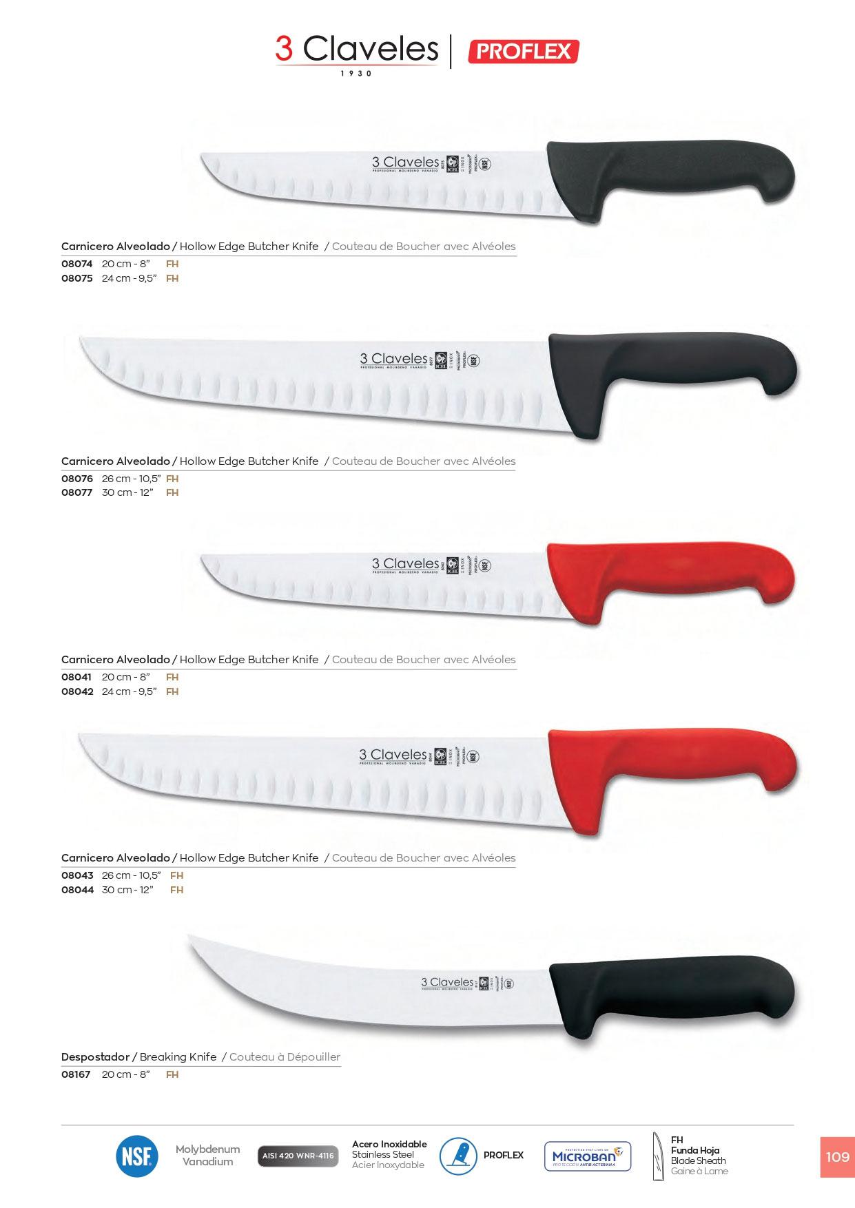 Cuchillos Profesionales de Carnicero Alveolados. Hoja de acero inoxidable. Mango de Proflex.