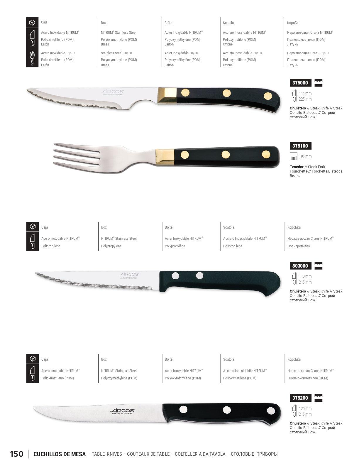 12 cuchillos chuleteros Arcos con mango de plástico negro y filo ...