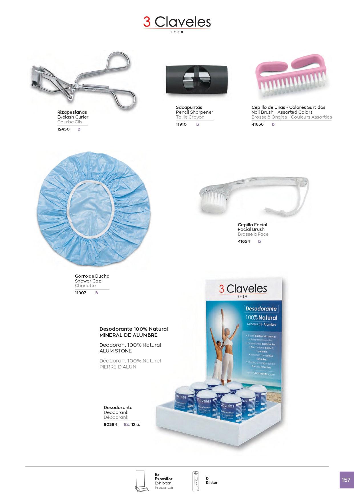 Rizapestañas, sacapuntas, cepillo de uñas, cepillo facial, redecilla de noche, gorro de ducha, desodorante 100% natural (mineral de alumbre).
